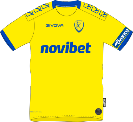 Η παραδοσιακή φανέλα που κυριαρχεί στην 97χρονη πορεία του Συλλόγου μας. Σε απόλυτα λιτή γραμμή όπου κυριαρχεί το βασικό χρώμα της ομάδας μας, με διακριτικό μπλε στις άκρες του μανικιού και στο λαιμό.
