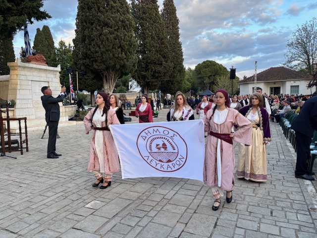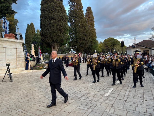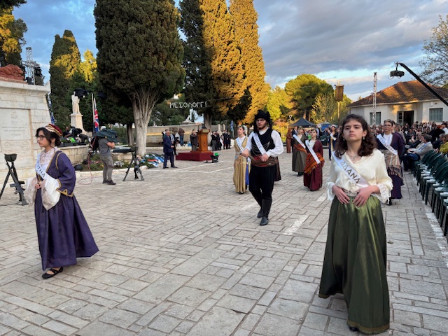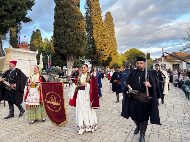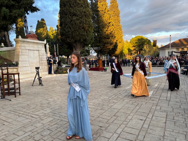 Οι παρευρισκόμενοι παρακολουθούν με σεβασμό και δέος, αποτίοντας φόρο τιμής σε μια από τις πιο εμβληματικές στιγμές της ελληνικής ιστορίας, που παραμένει ζωντανή στη συλλογική μνήμη.
