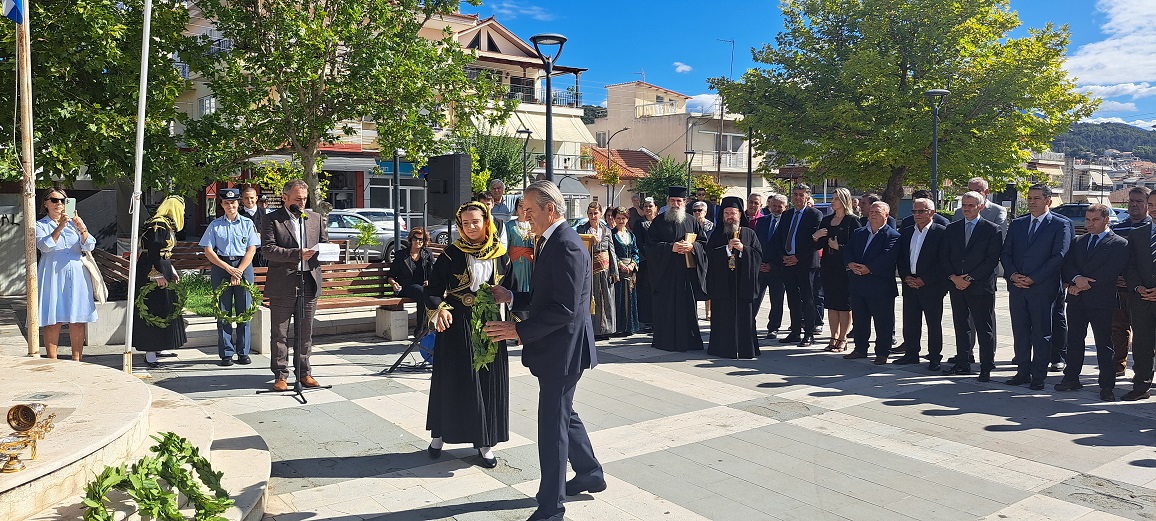 Ακολούθησε κατάθεση στεφάνων στο Μνημείο Μικρασιατών και Ποντίων Προσφύγων από τον Υφ. Εργασίας και Κοινωνικής Ασφάλισης Κ.Καραγκούνη, τον Δήμαρχο Αγρινίου Γ. Παπαναστασίου, τον Βουλευτή Θ. Παπαθανάση, τον Αντιπεριφερειάρχη Ν.Κατσακιώρη, τον πρ. ΔΣ Κ.Ζώη , τον επικεφαλής της μείζονος αντιπολίτευσης Κ.Πιστιόλα, τον πρ. της Κ.Αγίου Κωνσταντίνου Γ.Σταυρου, τον Αστ. Δντη Ακαρνανίας Δ.Γαλαζούλα, τον ΥΠ/ΤΗ ΠΥ Αγρινίου Χ.Χατζη,τον πρ. Κ. Αγρινιου Κ .Μποκόρο, το εκρ. Επιμελητηρίου Κ.Κιτσοπάνο, τον Αντ. Ένωσης Αγρινίου Ι.Καλλίμορφο, την πρ. Συλλόγου Μικρασιατών Προσφύγων Αιτ/νιας Α.Γκούρλια, πρ. Συλλόγου Ποντίων Τ.Τατούλης, πρ. Συλλόγου Πραμαντιωτών Β.Στάμου, πρ. Συλλόγου ΑΕΚ Αγ.Κων/νου Β.Σβαρνιά, πρ. Συλλόγου Παλαίμαχων ΑΕΚ Αγ.Κων/νου Γ.Μποτάογλου.